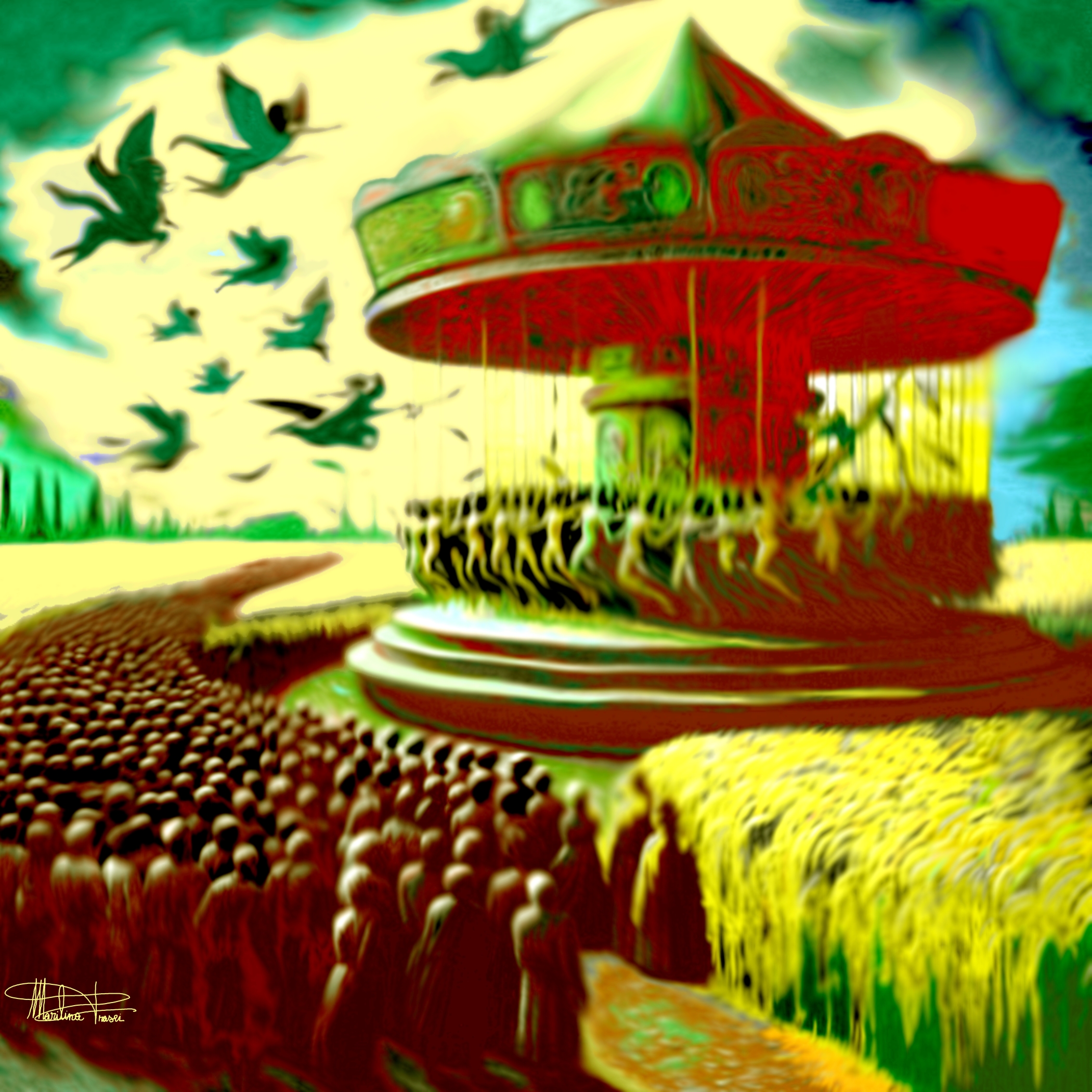 "La giostra degli uomini" è più di un’opera visiva; è un’esperienza emotiva che invita lo spettatore a riflettere sulla propria posizione nel ciclo della vita e nei legami umani. Il carosello diventa metafora universale, oscillando tra gioia e malinconia, movimento e staticità, ordine e caos. Marilina Frasci mostra con maestria come il digitale non sia una barriera, ma una nuova frontiera per la comunicazione emotiva.