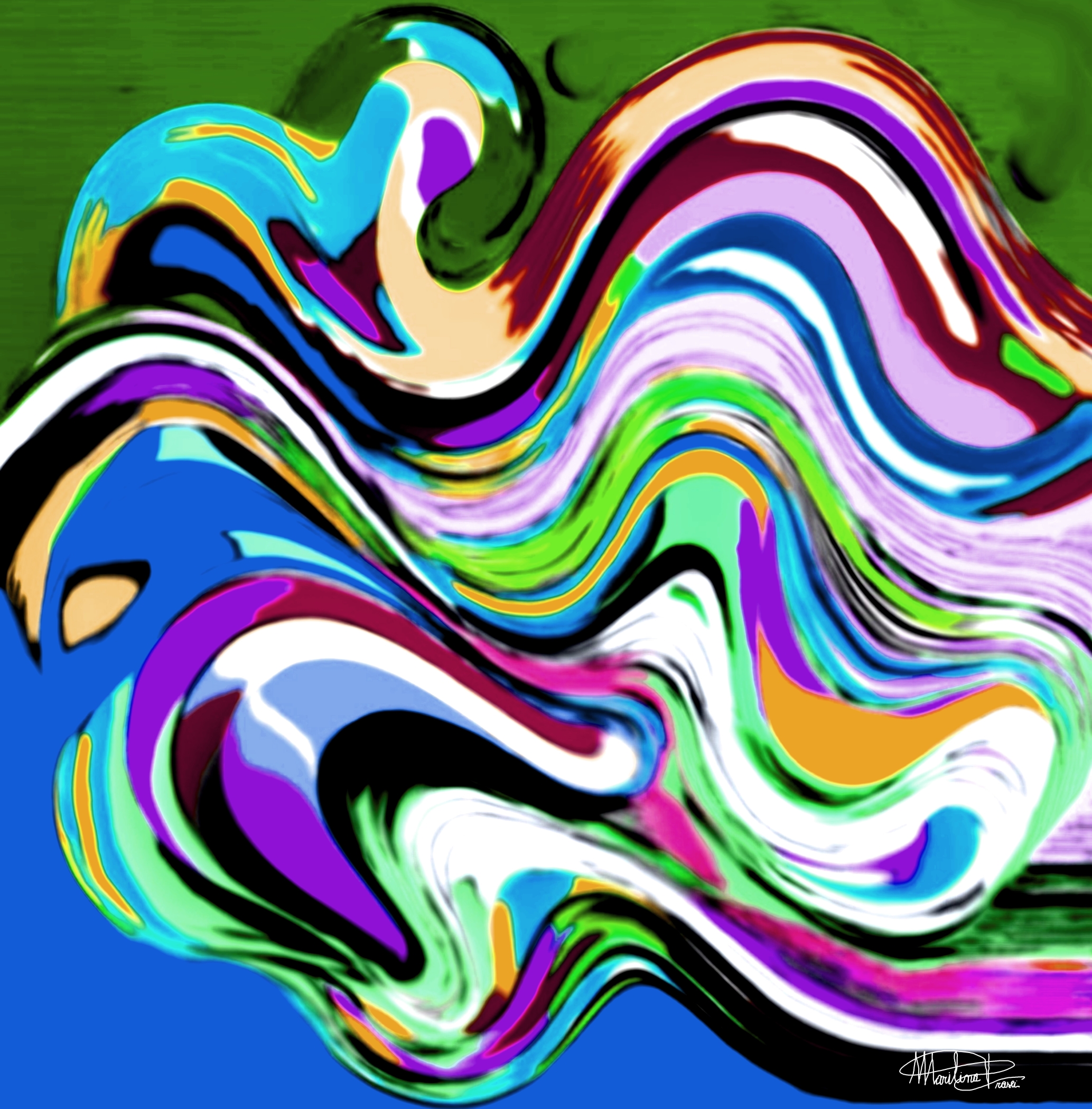 L’opera digitale di Marilina Frasci, “Prove d'astratto - l'arte felice – Onde cromatiche 2”, cattura immediatamente l’occhio e l’immaginazione grazie alla sua esplosione di colori e al dinamismo delle onde che sembrano quasi danzare sulla superficie virtuale. Ci troviamo di fronte a un’opera che non solo celebra la gioia e la vitalità dell’astrazione, ma che invita lo spettatore a immergersi in un linguaggio emozionale e universale, che supera il confine del mezzo digitale.