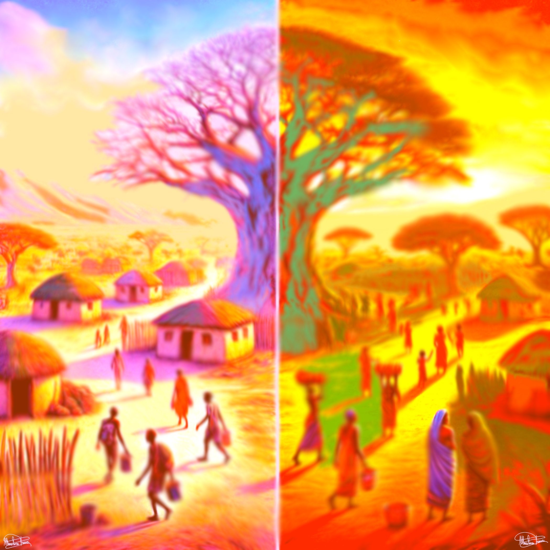 Dal punto di vista emotivo, La mia Africa è un’opera che va oltre la mera rappresentazione geografica, divenendo un’ode alla vita quotidiana, ai volti e alle storie di chi popola quei luoghi. In questo senso, si avvicina alla poetica di Chéri Samba, artista congolese che ha fatto della narrazione pittorica un mezzo per comunicare le sfide e le bellezze della cultura africana.