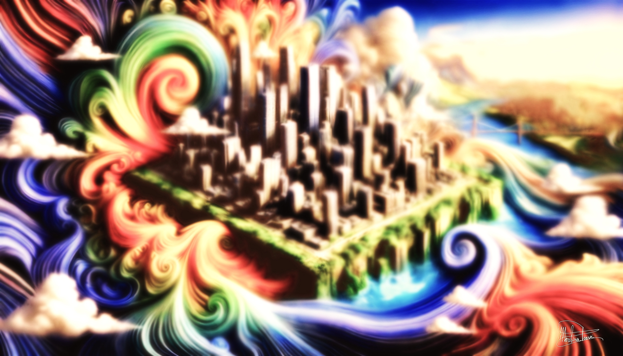 Questa versione dell’opera sembra parlare di impermanenza e trasformazione. La città appare avvolta da energie invisibili, che la modellano e la dissolvono in un continuum cromatico senza tempo. È un invito a riflettere sulla fluidità dell’esistenza, sulla sovrapposizione tra sogno e realtà e sul nostro ruolo all’interno di questo flusso perpetuo.