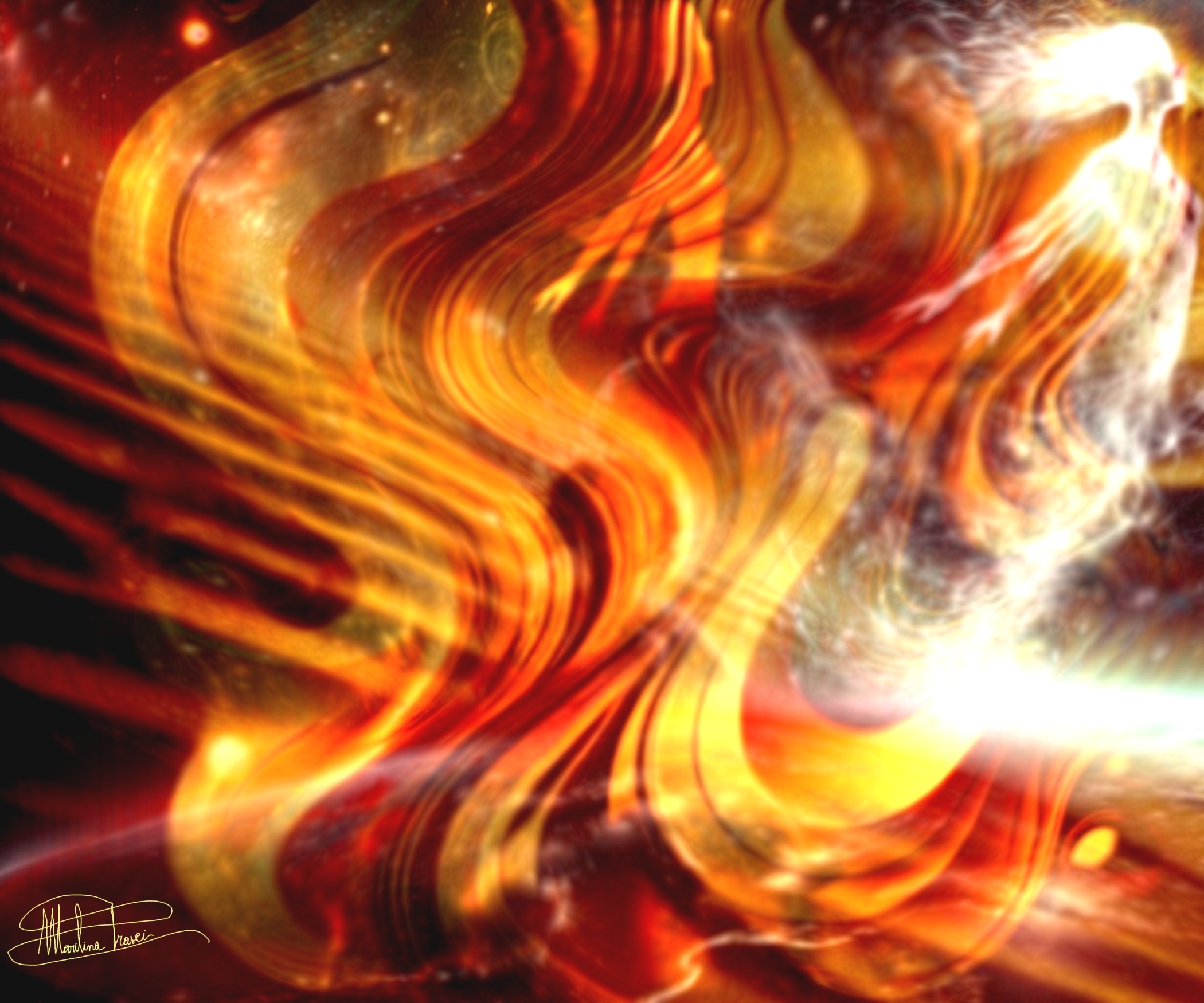 Le tonalità incandescenti di oro, arancio e rosso evocano il calore arido di un deserto interiore, una dimensione in cui l’anima si confronta con la propria essenza più pura, lontana dalle costrizioni materiali. Il dinamismo visivo della composizione richiama il vorticoso lirismo delle opere di William Turner, mentre la stratificazione luminosa e il gioco di trasparenze possono trovare echi nel lavoro dei maestri simbolisti come Odilon Redon. Tuttavia, Frasci va oltre la semplice evocazione pittorica, inserendo nella sua opera un’interpretazione quasi mistica della realtà, un rimando alla struttura energetica dell’universo che si interseca con il pensiero spirituale.