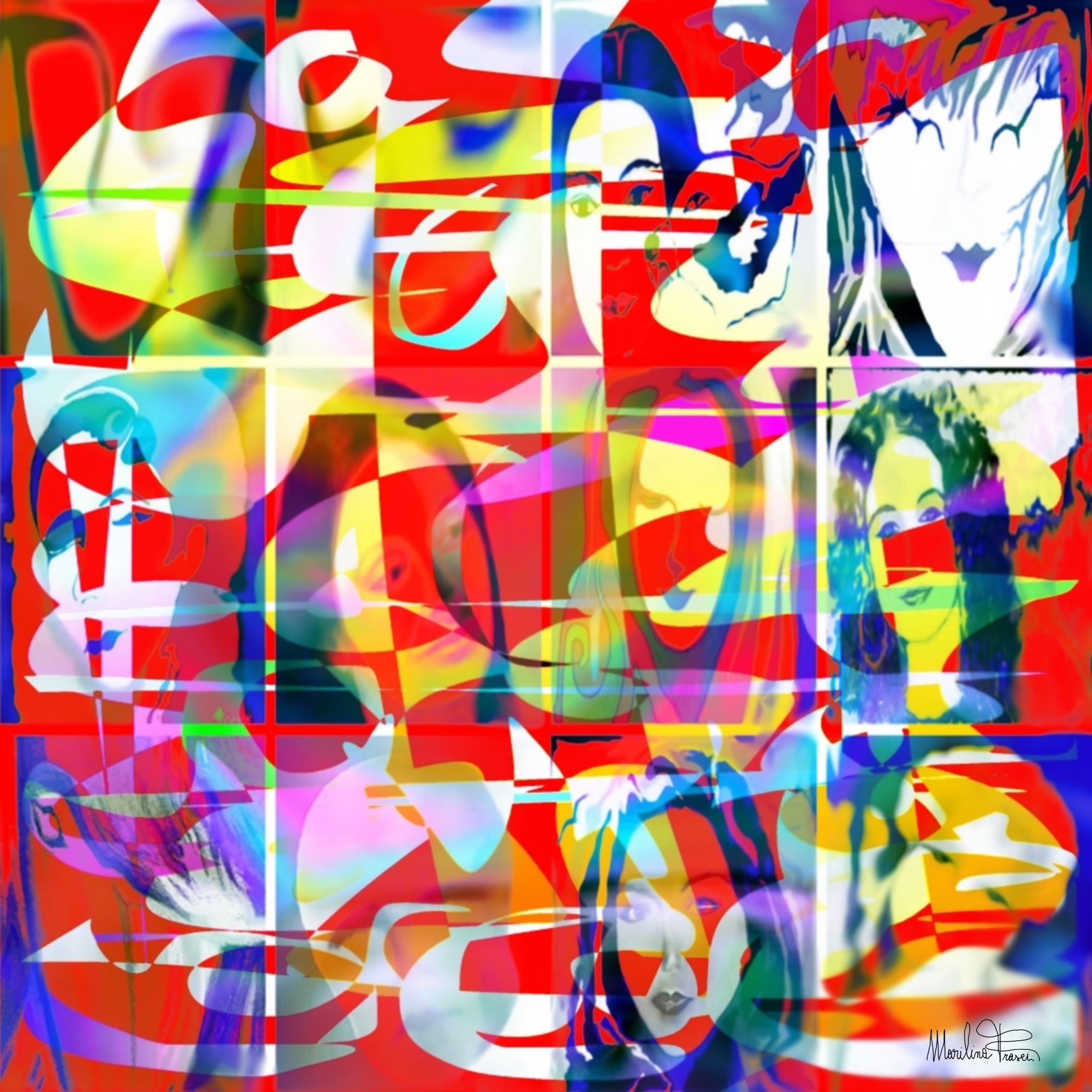 In quest’opera di Marilina Frasci, intitolata “Prove d’astratto – l’arte felice – Geometrie femminili”, l’occhio si imbatte in una sinfonia visiva che è insieme gioco e dichiarazione. Fin dal primo impatto, si è colpiti da un uso spregiudicato, libero e pienamente consapevole del colore, che si fa materia emotiva più che visiva. Qui l’astrazione non è fredda fuga dalla realtà, ma celebrazione corale delle sue infinite sfaccettature femminili. L’artista sembra evocare, reinventandole con spirito moderno e digitale, le atmosfere gioiose delle composizioni di Sonia Delaunay, la quale, già nel primo Novecento, cercava un’arte fatta di ritmo e luce, che non rinunciasse al calore umano. E se Delaunay tesséva con forme e pigmenti, Frasci intesse oggi con pixel e livelli digitali: strumenti diversi, stessa urgenza poetica.