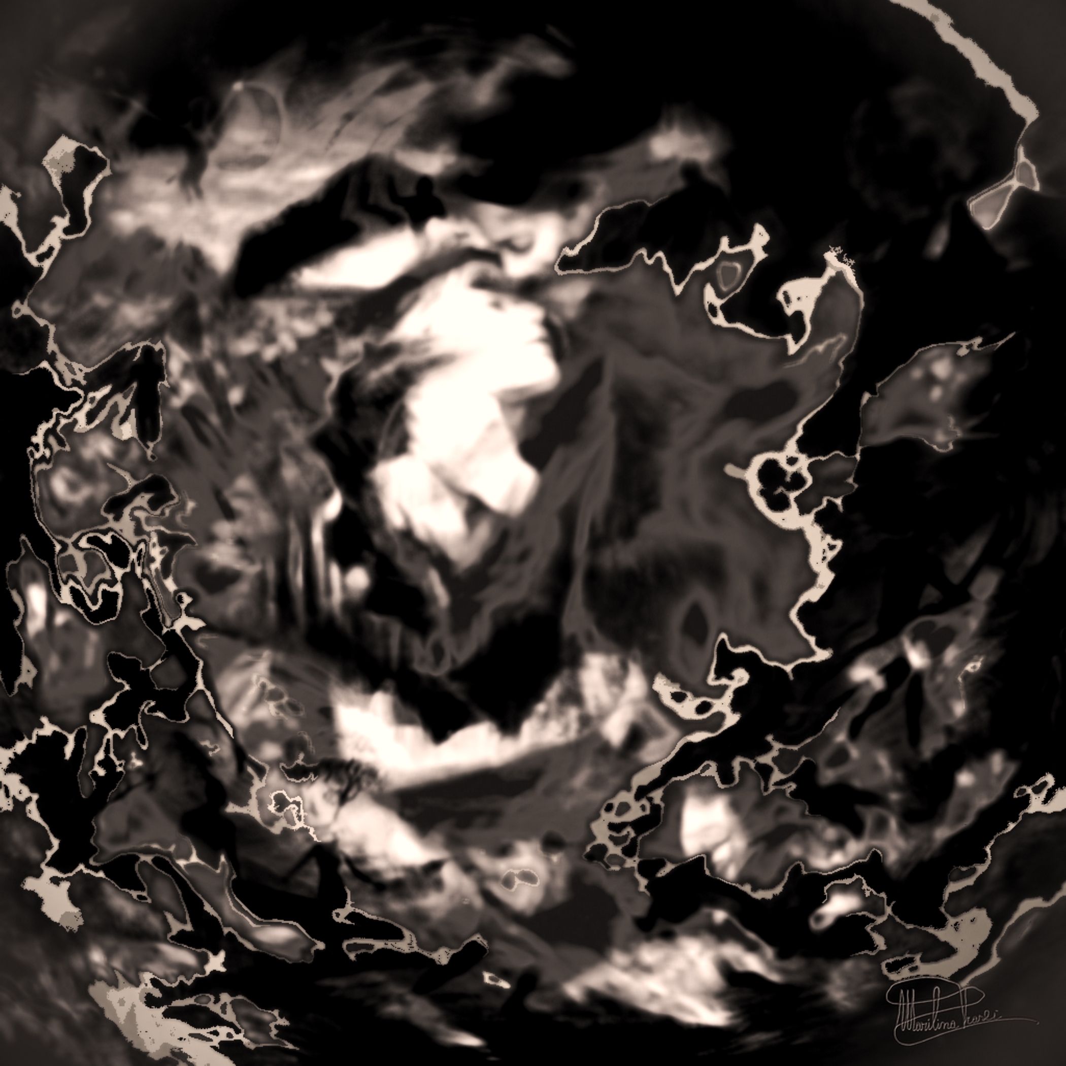Frasci usa il digitale come se stesse impugnando un pennello immerso nell'inchiostro dei sentimenti: ciò che appare a prima vista come una nebulosa indistinta diventa, per l’occhio sensibile, un paesaggio interiore, un dialogo muto tra luce e buio. È qui che la tecnica dell’artista mostra il suo legame profondo con la tradizione, ma anche la sua rottura poetica con essa.