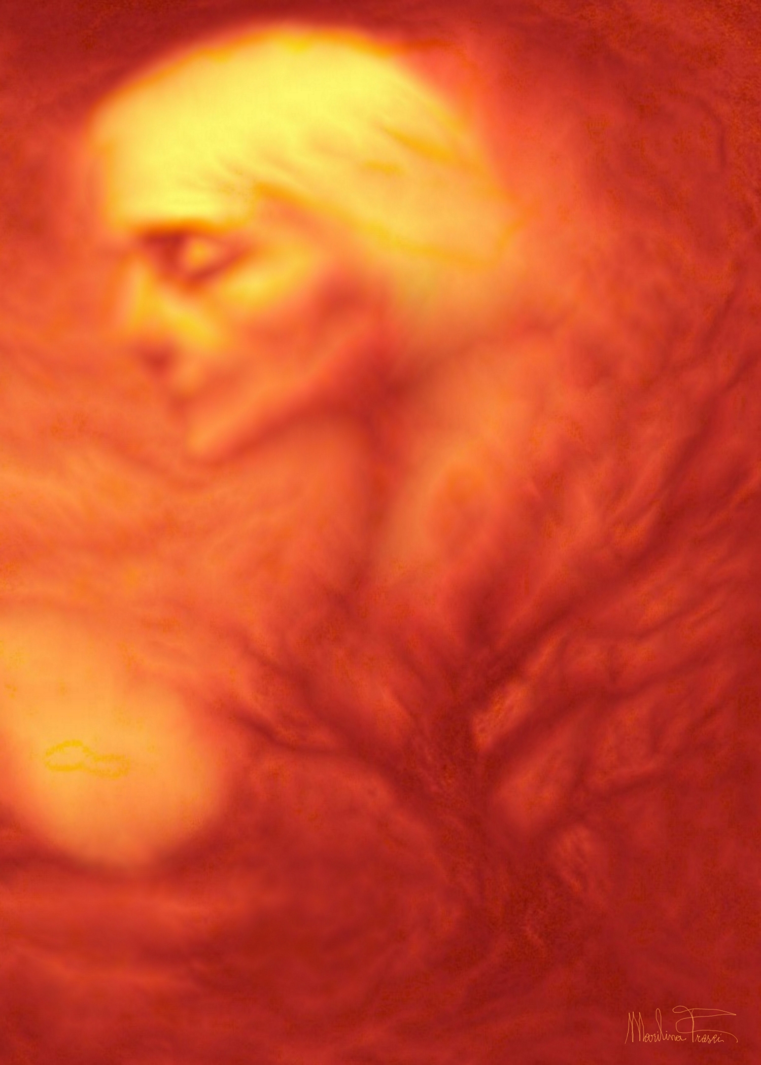 Marilina Frasci, con questa nuova raccolta di opere digitali, ci accompagna in un viaggio intimo e stratificato nel tempo, nell’anima e nella pelle stessa della memoria. La sua arte digitale non si limita a manipolare pixel, ma scava profondamente nelle fibre emotive del vissuto umano, come farebbe un incisore sul rame o un pittore sullo stucco ancora fresco. Frasci plasma la materia luminosa del digitale con una sensibilità che si ricollega, per spirito e intensità, a quella dei grandi maestri della storia dell’arte: da Odilon Redon a Gustav Klimt, da Francis Bacon fino agli esperimenti percettivi di Bill Viola, per quanto i linguaggi siano differenti.