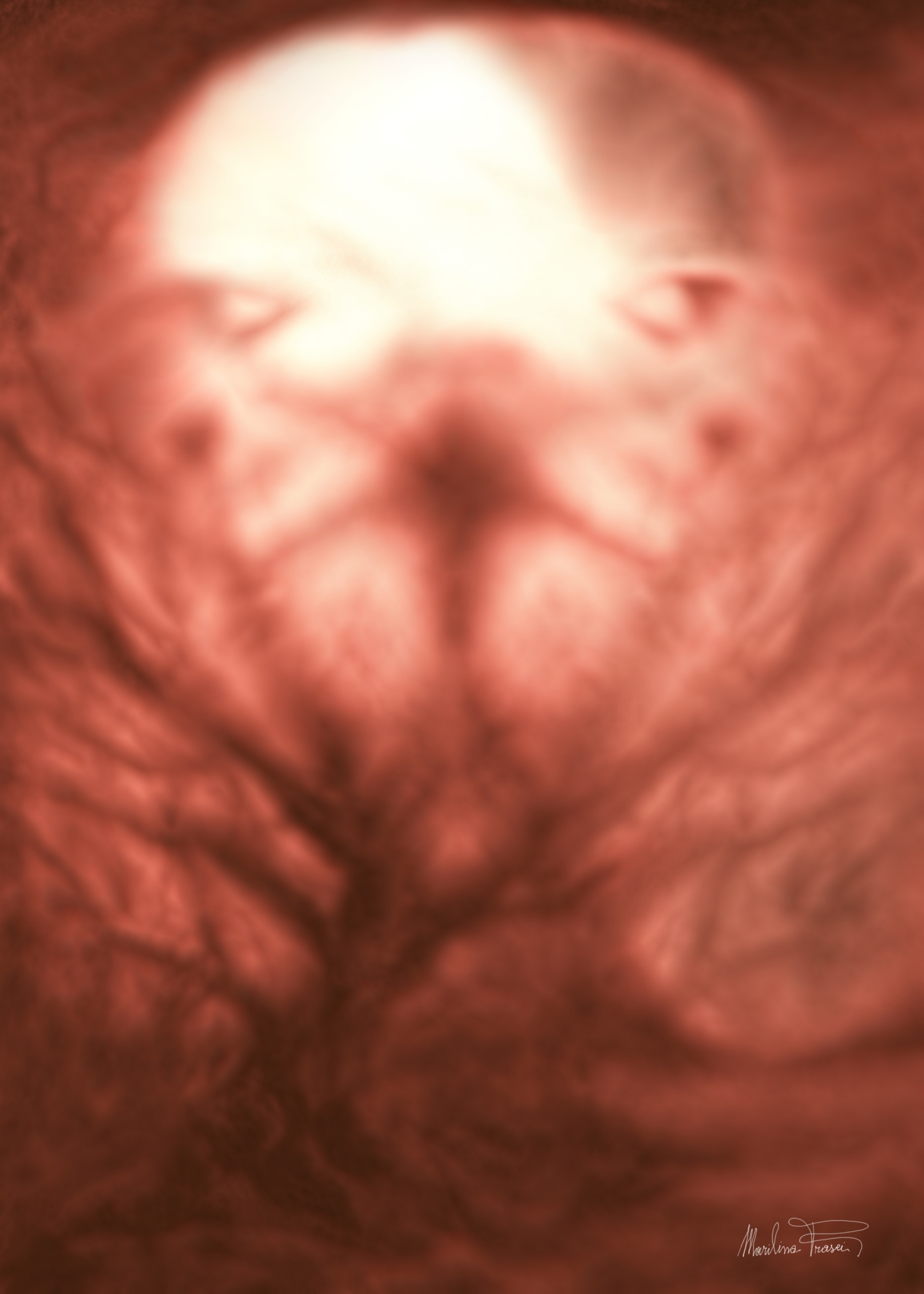 Marilina Frasci, con questa nuova raccolta di opere digitali, ci accompagna in un viaggio intimo e stratificato nel tempo, nell’anima e nella pelle stessa della memoria. La sua arte digitale non si limita a manipolare pixel, ma scava profondamente nelle fibre emotive del vissuto umano, come farebbe un incisore sul rame o un pittore sullo stucco ancora fresco. Frasci plasma la materia luminosa del digitale con una sensibilità che si ricollega, per spirito e intensità, a quella dei grandi maestri della storia dell’arte: da Odilon Redon a Gustav Klimt, da Francis Bacon fino agli esperimenti percettivi di Bill Viola, per quanto i linguaggi siano differenti.